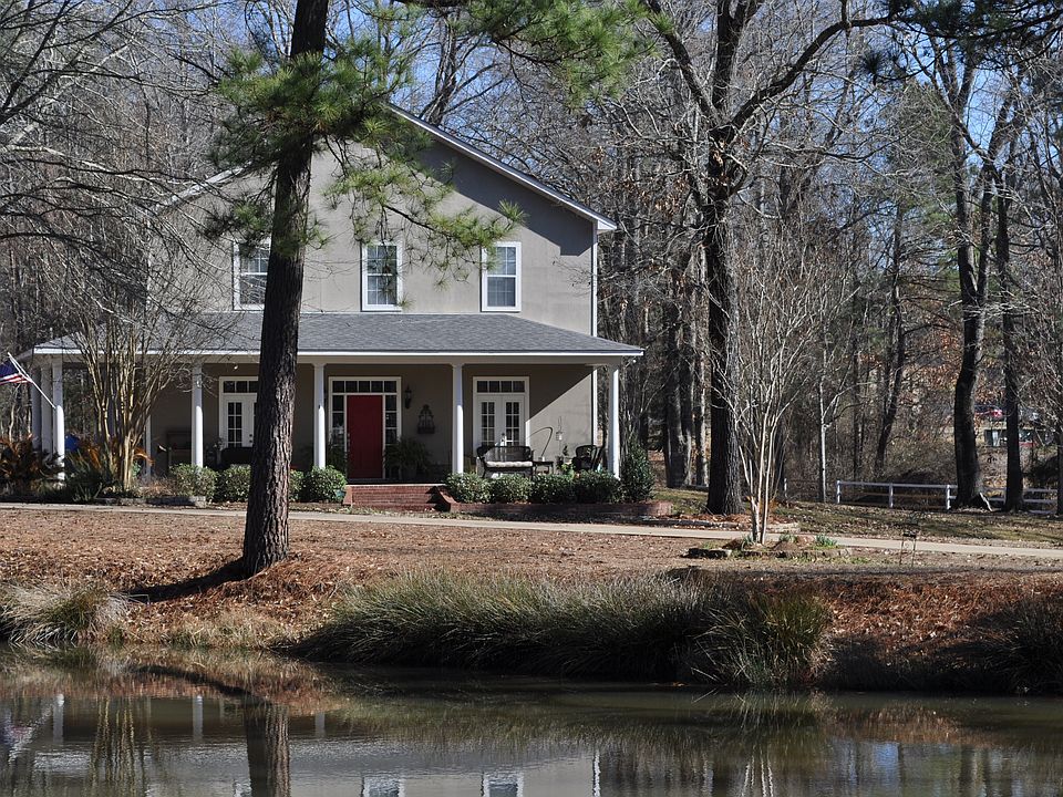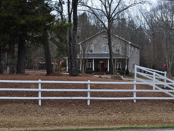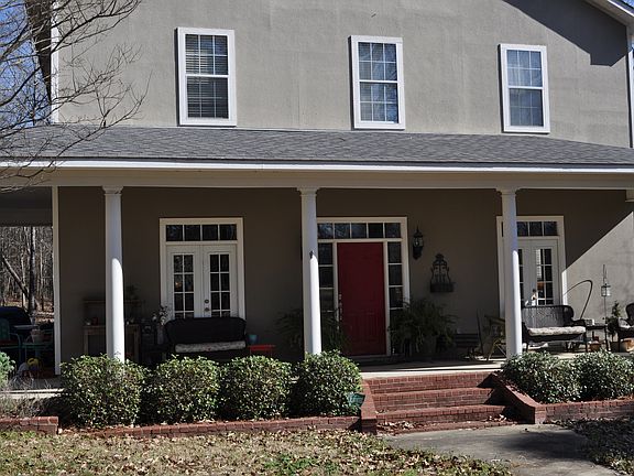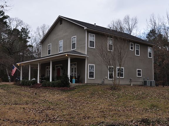 Two story farmhouse with front porch wrapping around one side, sitting on 2 two acre lots. The downstairs ceilings are 10 feet and the upstairs ceilings are 9 feet. There are four 15x15 bedrooms upstairs along with two full baths. There is a common area at the head of the stairs with two walk-in closets. The master bedroom/bath is downstairs, having a generous walk-in closet, double French doors opening onto the porch, whirlpool bath and separate shower. The vanity has two sinks. The living area has an open floor plan that includes a sitting area w/ a gas fireplace, a dining area and double French doors opening onto the porch. The kitchen has a brick-tile floor, double electric oven, gas stove, dishwasher, disposal and black Avanza countertops. There is a breakfast nook in the kitchen area. The laundry room is just off the breakfast nook as is the 1/2 bath. **APPOINTMENT ONLY**