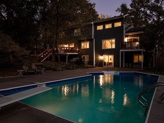 Well-maintained 1.5 story home with heated pool, 3-car garage and two large yards. The home sits on a spacious acre lot with plenty of trees that provide privacy and attract wildlife. Walking into the home from the driveway you will see new concrete apron and refreshed front entry way. As you enter you are greeted with vaulted ceilings and plenty of natural light in the living room. The main floor flows all the way from the sun room and kitchen over to the primary suite which has its own deck and pristinely remodeled private bathroom. Upstairs, you will find an open loft area perfect for a desk or lounge chair(s), two large bedrooms with their own full bathroom and a balcony! The lower level walks out to the fenced-in backyard which includes a fire pit area and large patio surrounding the pool, making it the perfect space to entertain this summer. There is an additional 4th bedroom and 3/4 bathroom, as well as a large family room, flex room, second wood burning fireplace, and plenty of storage.