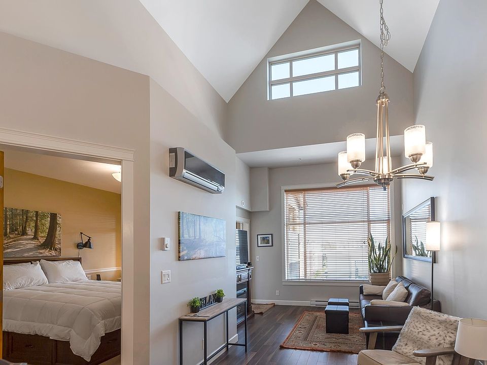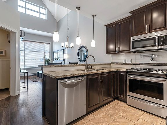 Soaring ceilingsGranite countersStainless appliancesGas stoveHeated floorsLarge bathroomSoaker tub