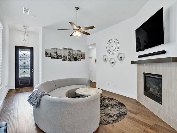 The charming home is located in one of Mckinney's most desirable neighborhoods of Trinity Falls! This home has an open concept floor plan, perfect for entertaining. The primary suite offers double sinks and a walk-in shower. Outside, enjoy a covered patio and private yard. Located just minutes from Highway 75, this vibrant community boasts resort-style amenities, including a pool, parks, walking trails, and ponds throughout.
