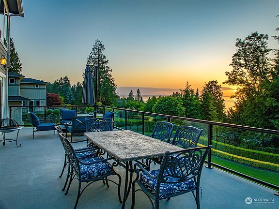 Stunning Talbot Park custom home w/ breathtaking Sound, mountains, & sunset views. Over 6000sqft of elegant living spaces, to the studs renovation in 2007, expansion of main level & primary suite in 2010. Wonderful open floor plan, main level offers gourmet kitchen w/17ft island, 2nd prep kitchen, living rm w/frplc, dining rm, sitting area, access to large view deck, bdrm w/ensuite bath, office, & powder rm. Upper level expansive primary suite w/stunning views, sitting area & walk-in closet. Lower level offers, family room, 3 bdrms including primary bdrm w/bath, HD theater room, laundry rm, & access to covered patio & yard. Multigenerational living potential. Park-like setting, large 3 car garage. Private beach for Talbot Park residents.
