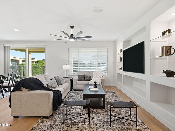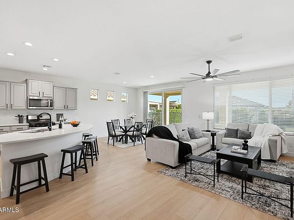 Beautifully updated 2-bed, 2-bath home in a quiet 55+ golf community! Features brand new flooring, new bathroom countertops, fixtures, toilets, and shower trim, plus newer appliances. Enjoy a low-maintenance turf backyard perfect for relaxing or entertaining. Located near grocery stores and everyday conveniences, with Poston Butte Golf Club right in the neighborhood—offering a great course and restaurant. Move-in ready and ideally situated in a peaceful, friendly community with resort-style amenities!