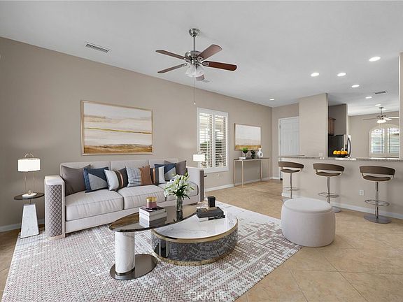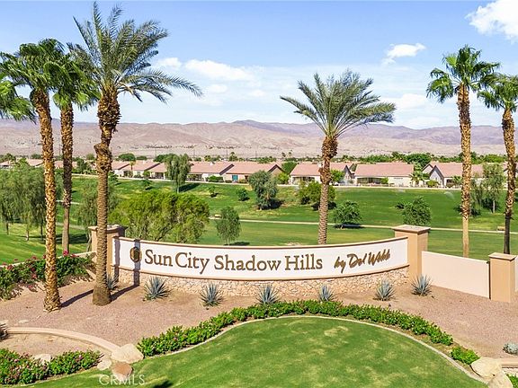Experience resort-style living in this beautifully upgraded Montoya floor plan, located in one of the desert’s most desirable 55+ guard-gated communities Sun City Shadow Hills! This 2-bedroom, 2-bath home with den/office offers an open, light-filled layout that’s perfect for entertaining friends or simply relaxing in style. The chef’s kitchen features granite counters, stainless appliances, and new cooktop & microwave. Enjoy new carpet, wood shutters, tile floors, and ceiling fans throughout. Step outside from the living area to a covered patio with flagstone concrete and a ceiling fan, overlooking a low-maintenance landscaped backyard, ideal for morning coffee or sunset gatherings. The primary suite offers a walk-in closet and a bathroom with dual vanities and a walk-in shower with glass doors. Additional highlights include a laundry room with sink and a two-car garage with storage racks and its own A/C unit, perfect for a workshop or hobby space. This move-in ready home invites you to start enjoying year-round resort living with pools, fitness center, pickleball, tennis, bocce, golf, clubs & 24-hour guard-gated security.