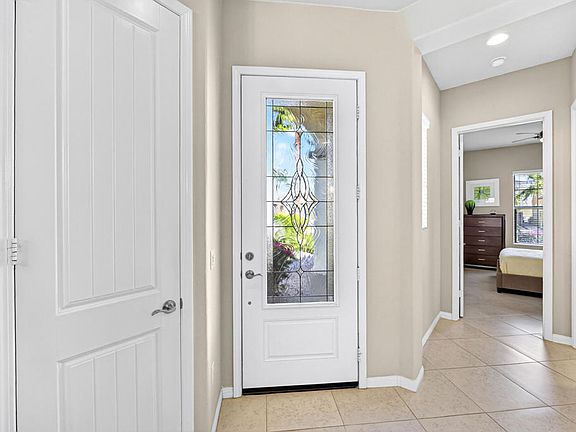 Beautifully landscaped backyardVibrant greeneryMature palmsBright open livingPrivate spaPrimary suiteStep-in shower