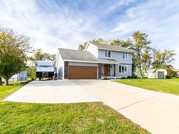 Upstairs you'll find a full bathroom and three bedrooms, including a primary suite with a walk-in closet and its own full bath. The lower level offers room to spread out with an additional living space, a fourth bedroom and tons of storage. An attached two car heated garage also offers a camper hookup with an additional paved parking space in the driveway. Enjoy the convenience of small town living with quick access to the metro and walking distance to the elementary and middle school, city park and local ice cream shop! Schedule your private showing to check it out today!