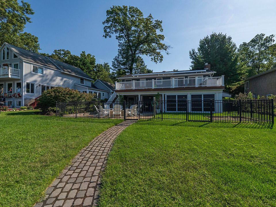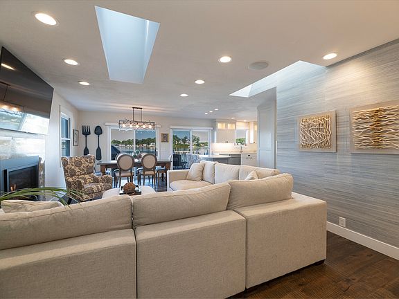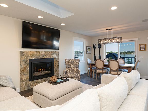 Nestled on the desirable shores of Eagle Lake, this exceptional residence is a testament to thoughtful design and impeccable execution. Every space, from the welcoming main entry to the serene outdoor landscape, has been professionally updated to create a seamless blend of contemporary luxury and timeless lakeside charm. This home is an entertainer's dream! From the moment you step inside, the commitment to quality is evident. New tile flooring welcomes you through the entry into the living room, a sophisticated gathering space, centered around a new gas fireplace insert and a handsome granite surround. Finishing out the living room is a chic Grasscloth wallpaper, and a spectacular new beverage center with custom cabinetry, lighting, tile backsplash, quartz countertop and separate refrigerators for beverages and wine. The kitchen shines with a new island topped with elegant quartz, perfect for meal prep and casual dining. A stylish new tile backsplash completes the updated, polished look. In the adjacent dining area, a new wrought iron light fixture casts a warm, inviting glow, perfect for everything from family dinners to formal celebrations. Enjoy coming home to your spa-like primary suite that has been meticulously updated to suit your needs. Warm tones, elegant flooring, soaking tub, and private door to the deck will make you never want to leave. The design of this home is a perfectly woven tapestry of cohesive elegance throughout. Each bedroom and living space has perfect lake views and access. The main floor primary suite and main living area have separate dedicated entrances to the expansive composite upper level deck which spans the entire back of the home. The deck houses a built in grill station with attached natural gas supply while providing ample room for entertaining. The deck flows down to a lower level patio allowing for multiple gathering areas forming a perfect setting for both large or intimate gatherings. The home's lower level has been brilliantly finished to serve as a versatile guest suite. The lovely kitchenette features a new sink, faucet, and quartz countertop, providing convenience and style. The completely renovated lower-level bath offers new tile floor, toilet, contemporary wall coverings, and updated lighting.