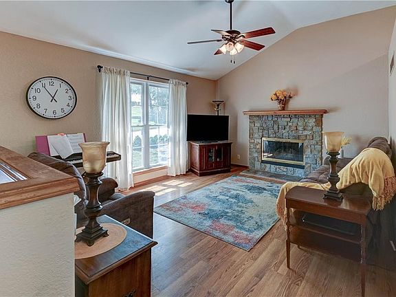 Surrounded by Sylvan scenes, you'll only have one next-door neighbor! There are also lots of extras here: I love the vaulted ceilings. A bay window overlooking the private wooded backyard is centrally placed in the dining room, which is open to the kitchen, where there is an enclosed pantry. In the light-filled living room, a cozy fireplace invites conversation. The master bedroom has its own private full bath, and you will find 2 additional bedrooms and another full bath on the main floor as well. The walkout lower level contains a fourth bedroom, which is ideal as a second master ensuite, family room, separate living quarters, or something uniquely your own idea! There you will find a third full bath, ample closet space, and a woodland view through double glass doors which open onto the patio. It additionally has access through the front door and through the garage.