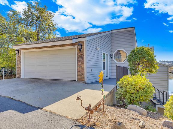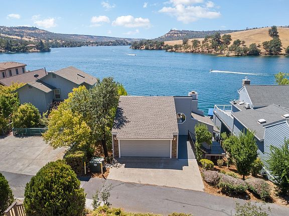 Your waterfront dream life awaits on North Shore Lake Tulloch!Step into a world of shimmering waters,unmatched VIEWs & year-round lake FUN!You're greeted w/sweeping 180-degree views of Lake Tulloch the moment you walk through the door.Perfectly positioned on open water,it's more than a home,it's an invitation to embrace lakeside living at its finest!Inside,vaulted knotty pine ceilings & expansive windows bathe the great rm in golden light,bringing the outdoors in & framing the ever-changing lake & foothill vistas.The open-concept layout lends to effortless entertaining & everyday comfort.The heart of the home is the stylish,updated kitchen,where an oversized quartz island w/waterfall edge invites gathering & conversation.New Shaker-style cabinetry,pantry closet & new s.s. appliances both beauty & function.A brand-new custom hutch adds elegant display & storage space,while beachy wood-look vinyl flooring flows throughout the main level,staircase & powder rm.Step out double sliders to your expansive upper deck to sunbathe or lounge under the remote-controlled awning or adjust the mood indoors w/remote-controlled blinds on the oversized picture windows.Dine alfresco or in the spacious lake-view dining area.Exterior upgrades include new:roof,siding,rock detailing,TREX decking,railings,stairs & more for years of low-maintenance enjoyment.Comfort meets sustainability w/a brand-new HVAC system,a 10.7KW fully-owned solar system & 3 Enphase 5KW backup batteries for 15KW of storage & constant power.A brand-new pellet stove provides cozy warmth.The lower level offers 3 serene lake-view bedrooms,all w/private access to a covered,wrap-around deck.The en-suite primary & luxurious,spa-like guest bath w/deep soaking tub boast updated cabinetry,fixtures & quartz counters.The wide rear bedroom flexes easily into a bunk rm,home office,or primary w/endless VIEW & black-out shades.The middle deck has a 1/2 bath & outdoor shower for rinsing off after lake fun.Below,a tiled bonus rm opens to a 3rd covered TREX deck & sunny lounging area.Versatile & perfect for a game rm,4th bedroom,or quiet reflection space.Step down to a private patio w/natural stone beach access.Wade into the water,garden,fish,unwind,or hop in your boat from your fully-permitted,covered concrete super-dock w/new:boat lift,metal canopy,upgraded electrical & dbl ski ports.Nestled on a quiet,1-way st w/2-car garage,driveway parking space,3 guest spaces off Foothill + extra parking at the court!Lake days await!