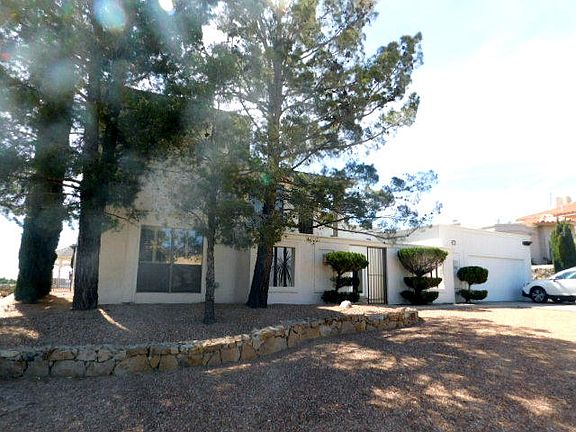 Attractive two-story Territorial home with a unique floor plan and spectacular views. This four-bedroom, three-bathroom home features a large, sunken living room with cathedral ceilings and windows with panoramic views of the Rio Grande Valley and the Potrillo Mountains over a hundred miles away in New Mexico. A two-way fireplace connects the living room with the den and a spacious kitchen. A formal dining room has cabinets that match kitchen cabinets. The kitchen features granite counter tops, a large island, and a built-in pantry. The electric stove top has a downdraft vent; the electric oven and microwave are built in. The home is cooled by two refrigerated-air units. The updated bathrooms include granite countertops and designer fixtures. The spacious master suite occupies the entire second floor and features a balcony, a roof garden, and numerous windows with plantation shutters to enjoy the views. The large garden includes a gazebo, a spacious covered patio, pergolas, and a hidden, private hot tub. But the most outstanding feature is the amazing views of the Rio Grande Valley and New Mexico.