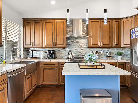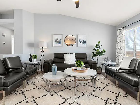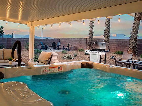 The home is within driving distance to restaurants, casinos, hospitals, and other stores. Close to walking trails. The home features a two-car garage, and contactless self-check-in. Fenced backyard with a private hot tub and mountain views. Living room has smart TV. Kitchen has stainless steel appliances. You can work from home with the spacious master bedroom. Backyard is great for resting after a long working day.