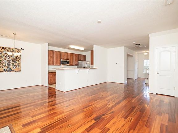 Here's your chance to move into well sought after community w/serene tree-lined views, private patio area & covered front porch. This beautiful huge corner lot townhome is move-in ready! It's all brick, 3 bed, 2.5 bath w/1 car garage, open-concept layout w/9" ceilings, crown molding, granite countertops, stainless appliances, primary bedroom features a tray ceiling, walk-in closet, ensuite w/double vanities, soaking tub, and separate shower. All bedrooms are spacious! Enjoy the community amenities which include a pool, playgrounds, ground maintenance, dog park, tennis/pickleball courts, basketball courts, scenic trails, trash pickup, and maintenance free living! Located near interstate access, shopping, restaurants, hospitals, schools, etc.