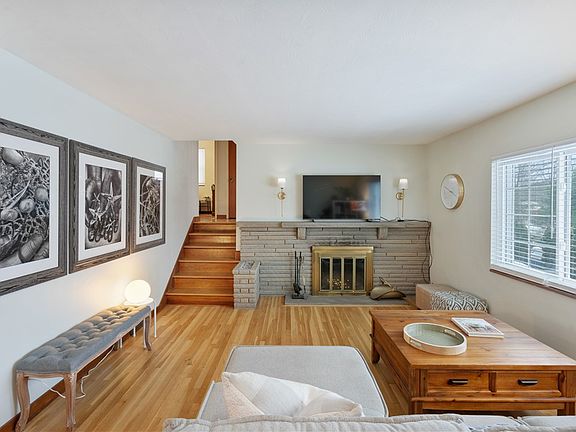 This two-bedroom, two-bathroom house features cherry cabinets that provide ample storage space in the kitchen. The beautiful hardwood floors throughout the home create a warm and inviting atmosphere. The bathrooms have been updated, offering a modern and refreshed look. The finished game room provides an additional living space that can be utilized for a variety of purposes, such as entertainment or leisure activities. The decorative fireplace adds a cozy and charming element to the home.