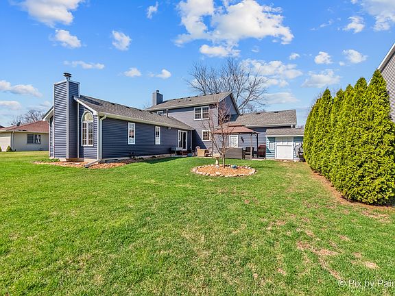 Location, location, location!!! This showstopper 5 bedroom/2.5 bath home checks all the boxes!! Step into this charming home to the cozy living room--perfect for your morning coffee. Large dining room has hardwood floors, gas fireplace, and has space for all your guests to sit and enjoy! The huge custom kitchen was redone in 2010 and is a dream! Gorgeous soft-close 42" cabinets, granite counters, tile backslash, ss appliances, breakfast bar, and heated tile floor. The huge family room (so much space) has a vaulted ceiling, hardwood floors, a wood-burning fireplace, and the wall-mounted tv stays! Mud room off of the garage (can also be an office) is a great landing spot for keeping you organized. Convenient first floor 1/2 bath. Going up to 2nd floor you'll find 4 bedrooms, 2 full baths, and a laundry shute. The Primary bedroom has double closets and an updated (2018) private bath. The second bedroom has a walk-in closet. Updated hall bath. Partially finished basement features a second family room, 5th bedroom (or playroom, or office), laundry area, and loads of storage space. Private concrete patio in secluded backyard and the gazebo stays! Garden shed for all your tools for taking care of your fabulous yard (backs up to park and trail). Siding, some windows, and garage door/opener new in 2020. Main furnace and April-aire new in 2024, family room furnace in a/c approx 8 years old. Water heater new in 2023. Invisible fence/collar included. Gutters all have leaf guards. Location can't be beat with access to park, playground, and walking trail. This is the one!!!
