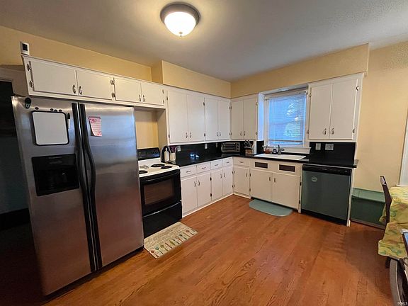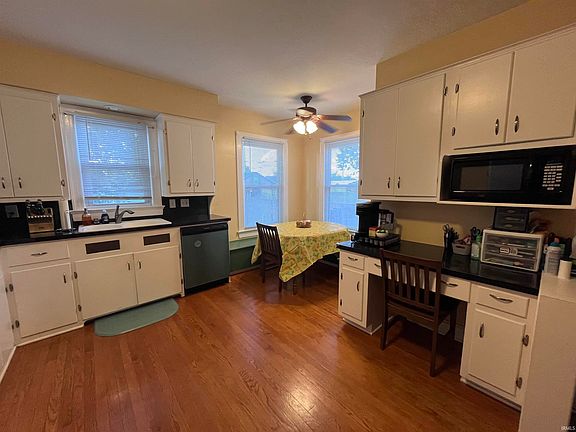 Check out this adorable 2 bed/1 bath home located on Evansville's Northside. This home was built to feel spacious with generous sized rooms, nice sized closets, wide hallway and large updated windows. Along with feeling spacious, the charming kitchen has abundant cabinets, built-in desk area and a breakfast nook with storage benches. It's the perfect place to enjoy the morning sun with your coffee. The main level has original hard wood flooring. The clean basement has a laundry area and provides quite a bit more storage. The peaceful backyard is fully fenced, has one car garage and additional parking is available in the back off the alley.