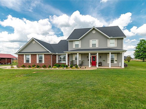 You will be impressed with this little bit of heaven. Lovely farmhouse style home that boasts, 4 bedrooms, 2.5 baths, just under 5 acres of fenced property. This home is centrally located in Tontitown, easy access to I-49 for easy commuting to anywhere in NWA. Fabulous outdoor entertainment area, with covered fire pit, cool decking all around. Everything is set up for you to have horses, including pole barn and riding area. Covered RV area too. This beautiful home has abundant natural lighting, crown molding, cathedral ceiling in the living room, and cozy gas fireplace. Formal dining room with custom built-in cabinets, kitchen includes central island, walk-in pantry, stainless steel appliances, and breakfast nook. Main level master suite, garden tub, walk-in closet. Second level bonus room and so much more!