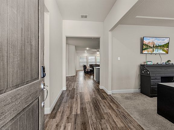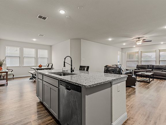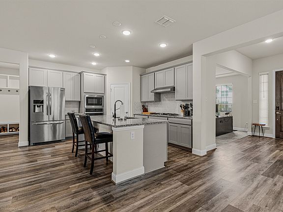 Welcome to this beautiful single-story home featuring 4 bedrooms, 3.5 baths, and a 3-car tandem garage. With the option for a secondary primary suite or in-law quarters, located close to the front door, this layout offers flexibility for modern living. Luxury vinyl plank flooring flows throughout, beginning at the welcoming foyer. At the front of the home, a bedroom with its own full bath and walk-in closet is perfect for guests or extended family. The open-concept design features a gourmet kitchen with built-in stainless steel appliances, granite countertops, and a gas cooktop, all of which open into a spacious living room ideal for gatherings.