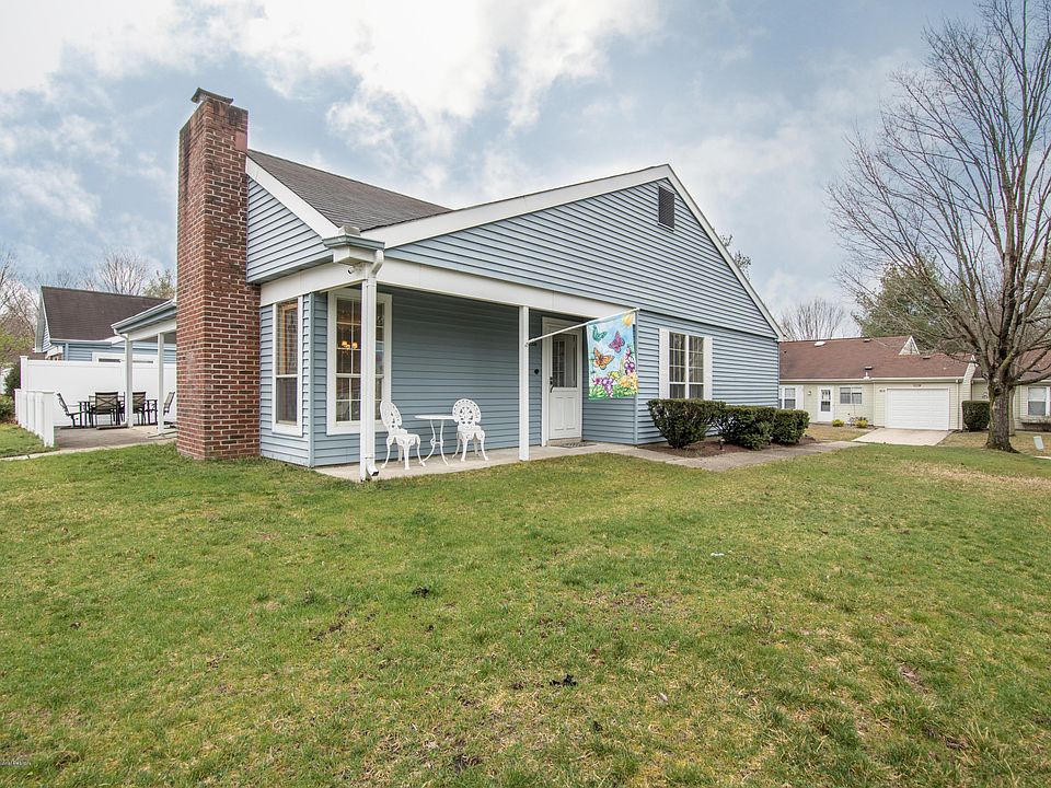 Popular Blair model end unit, corner property, large lawn, privacy on quiet street. 2-covered porticos, private fenced-in patio perfect for entertaining or relaxing. LIGHT & BRIGHT w2w. LR, DR, KT, SR, MBR suite, BR, sunroom/den/3 rd BR, 2 full baths & wood burning-FP. 2nd BR instantly converts 2nd suite. Incl. REF, DW, DBL-OVN, upscale W&D w/steam. Loads of storage incl. Coat, linen, 4-dbl closets, full-floor-walk around attic, and largest garage built w/driveway for 2nd vehicle. 35% saving on elec. bills: Unit has 3-yr old $14.5K Lennox heat pump for AC & heat. Highly efficient it saved 35% in elec. bills. Water heater is also 3-yrs old. +55 community is active & vibrant offering wealth of clubs, activities & outstanding maintenance protecting your home & investment. HOA fee of 310 includes Verizon FIOS Premier TV which is 283 channels. Most HD & some SD.