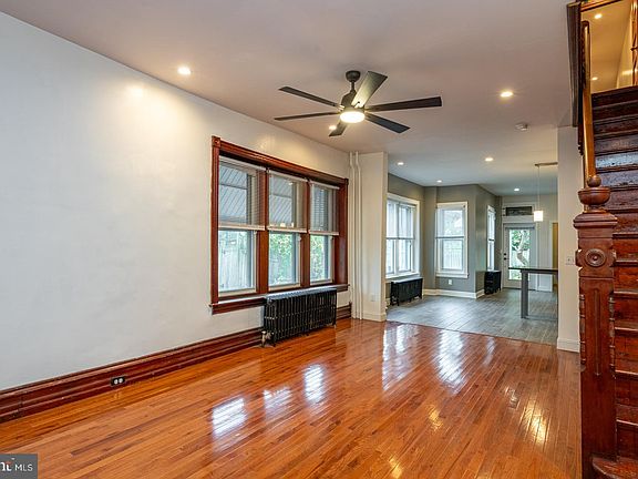 This beautifully updated end-of-row townhome in Centre Park offers a perfect blend of historic charm and modern convenience. The open-concept first floor features a spacious living room, dining area, and a stylish kitchen with tiled floors, brand-new cabinets, granite countertops, an oversized stainless steel refrigerator, gas stove, and a large illuminated stove hood. A convenient half bath completes the main level. Upstairs, the second floor includes a serene master bedroom with access to a private porch, a sleek bathroom with a glass shower, a cozy office space, and an additional bedroom. The third floor provides a large, versatile bedroom or storage area with a generous closet. Throughout the home, you'll find gleaming hardwood floors and elegant tile in the kitchen and bathrooms. Each room is equipped with modern LED lighting options, including recessed lights, dimmers, and ceiling fans. Outside, enjoy a welcoming front porch and a private backyard, perfect for relaxing or entertaining. This move-in-ready property is ideal for buyers seeking comfort, style, and space in a vibrant neighborhood.