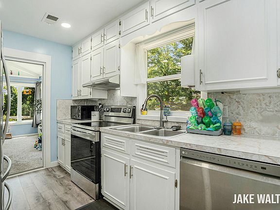 Welcome to this charming ranch-style home on Grand Rapids' NE side! Enjoy the spacious family room addition (aprox. 8 yrs old) perfect for relaxing or entertaining. Recent updates include new laminate flooring throughout much of the home along with lots of new trim (June 2025) & new kitchen and laundry appliances & water heater (aprox. 2 yrs ago). The large primary bedroom offers direct access to a full bath w/ stand-up shower. The main floor also features a front living room, a dining area off the kitchen, main floor laundry & pantry & two more bedrooms & a 2nd full bath. The basement offers great storage & walks out to the backyard w/ a seating area & a firepit. One stall garage plus carport. Central Air. Schedule your showing! Offer received. Highest and Best Due 7/5 @ 5:00pm