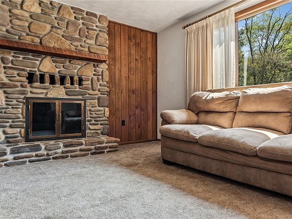 One of a kind, well maintained property on over 8.5 acres! The driveway opens up to a glorious storybook setting where you find a timeless three bedroom, one bath cedar ranch home with an attached 2 car garage and a bonus detached 2 car garage. Both are oversized 24'x24' each. There's a wood shed at the back of the yard and a greenhouse too! A second full bathroom is located in the detached garage. Home is move in ready or ready for your vision! A fireplace in the living room and a wood stove in the basement keep the home cozy and warm. Abundant natural light and beautiful views through the picture window in the living room add to the charm. Expansive basement offers plenty of storage, party or play space. This peaceful oasis just off the beaten path, is conveniently located near major roads, close to shopping, dining and all of civilization.