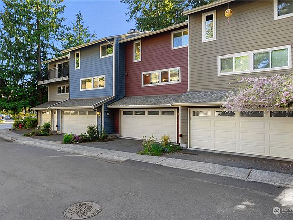 Welcome to Forest Villa! One of Shorelines premier condominium communities. This gated community Includes a beautiful clubhouse, swimming pool and spa. As you enter the gate take your first right turn, second to the last home on the left side (the Red one). Ground-floor entry though the double car garage w/main entry on the back side. Recent year exterior renovations make these homes rival new construction. This Townhome floor plan has a large flex-room on the ground floor now used as a 3rd bedroom. The main floor overlooks the lush greenbelt. Upper level with 2 bedrooms, 2 baths. The primary suite can easily handle a King size bedroom set & has a private deck. Great public transit options. $5,000 Buyer Bonus. Please use guest parking.
