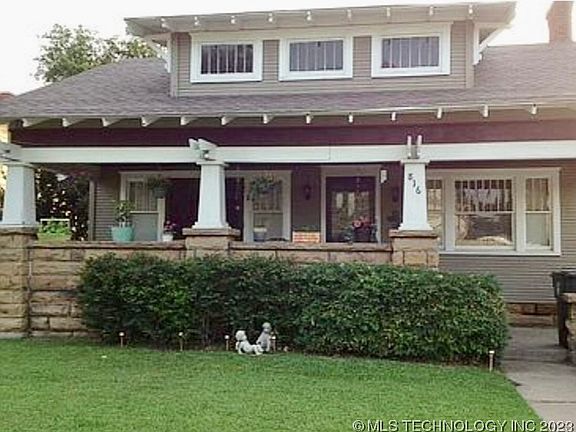 Historical 1930 Craftsman style home with original beautiful wood floors, wood bookcases and corner shelf built-ins. This home has a nice raised front porch, great for sitting outside. Three bedrooms and two full bathrooms, and separate laundry room. Kitchen has side nook/pantry room that could also be used as an office. Close to elementary and high school. Nearby park, skateboard park, and tennis courts. Close to shopping, restaurants, and historical downtown Okmulgee.
