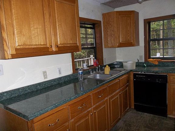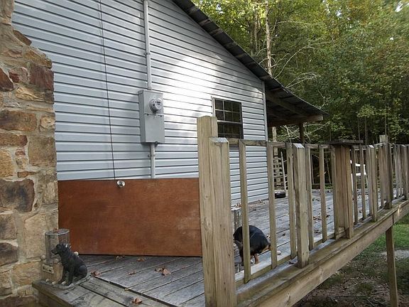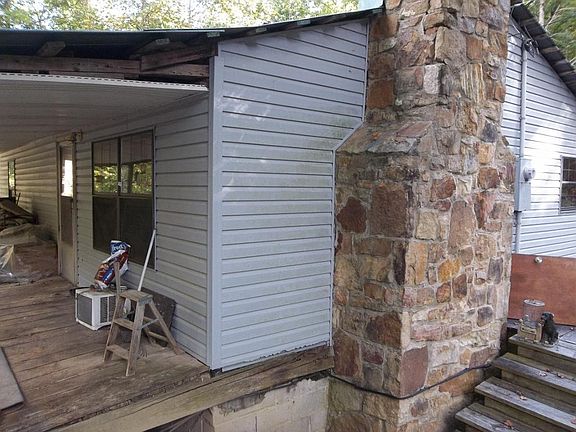 Home is located in a nice private setting with rock formations and hardwood trees on the property. Home also has a huge kitchen with plenty of cabinets, a stone fireplace in the living room . With almost 3 acres to stretch your legs and 3 more acres available that attaches to the back of the property for 10k more. Home does need some repairs but if your a handyman they could easily be fixed. Owners selling as is.