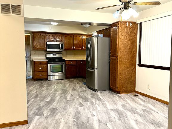 The open concept floorplan features a spacious and bright living room with two large windows. It flows seamlessly into the dinning area and kitchen with stainless steel appliances and ample storage cabinets. All three bedrooms are nicely sized with full bathroom at main floor. Good sized sunroom with luxury vinyl flooring. HUGE basement is partially finished with bar and luxury vinyl flooring. Perfect for family and friends gathering and parties, especially for long Wisconsin winters!! Or kids play area. And extra space for gym/office. Fenced backyard and large two cars garage with extra working benches! Come to see it and you'll fall in love with it as we did.