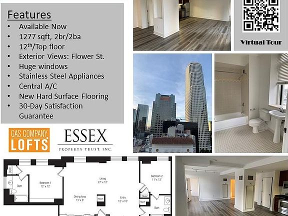 Live lavishly at Gas Company Lofts in Los Angeles, CA, where entertainment, dining, shopping, and culture intersect in the heart of DTLA. Our historical landmark building offers an eclectic array of open floor plan lofts including 2-bedroom options. Our spacious residences come in a wide variety of designs and finishes. Enjoy polished concrete or hardwood-style vinyl floors, lofty or standard ceilings, stainless steel appliances, granite countertops, and expansive windows. With 48 different layouts, you can truly make your home as unique as you. Gas Company Lofts is a pet-friendly community with amenities that are sure to impress. Take in amazing city views from our rooftop pool and spa, work up a sweat in the state-of-the-art fitness center, entertain friends and neighbors in our lavish indoor/outdoor lounge with BBQ grills and open-air kitchen, or gather in the game room opportunities for entertainment and relaxation are plentiful in our community. When it's time to head into the city, our location is a short distance from the 7th Street/Metro Center makes getting around a breeze. You can easily dash about the city using DASH bus options and nearby I-10, 101, and 110 make commuting beyond the downtown area simple. From our location in the center of Downtown LA, all routes lead to the luxe life. *Lease by 4/21/21 and receive up to 8 weeks free rent! Restrictions Apply. Discount to rate is a monthly recurring concession for first lease only - amount included in listed price. Contact for details. Eligible for new residents only.* Lease this beautiful home today! Please note: - Laundry facility on-site - Dogs/Cats allowed (2 max), breed restrictions apply. Pet rent/deposit will be applied. - Utilities are resident-responsible - Parking starts at $150/space - 12 month lease option only - To qualify, the monthly household income must be at least 2.5x the monthly rent ($3068 x 2.5 = $7670 minimum monthly income) - $600 security deposit on Studios, $700 security deposit on 2BR homes (on approved credit) - $48 application fee per person, $500 holding deposit - Renter's Insurance required , minimum $300,000 liability coverage 30-Day Satisfaction Guarantee: If you are not 100% satisfied with your home, you may transfer to a comparable residence within the community or terminate your lease. Some restrictions may apply. Some restrictions may apply.