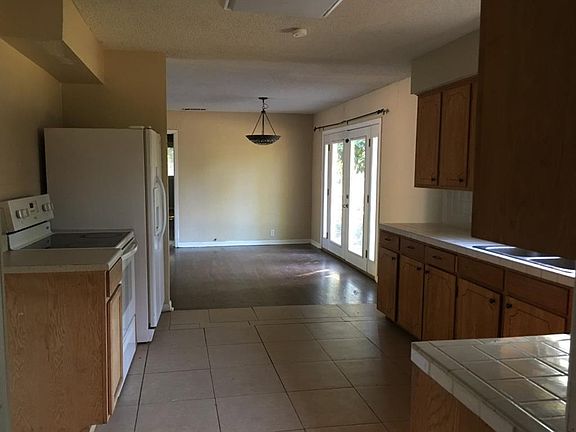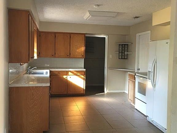 Spacious kitchen, dining room views large fenced backyard with patio under big shade tree. Nice shed for storage. Pantry storage in kitchen and corner shelving built in. Refridgerator stays. Original wood floors. Owner will consider your repair and updates request list.