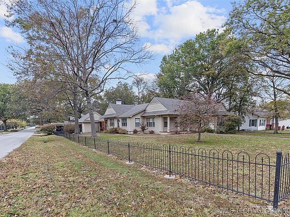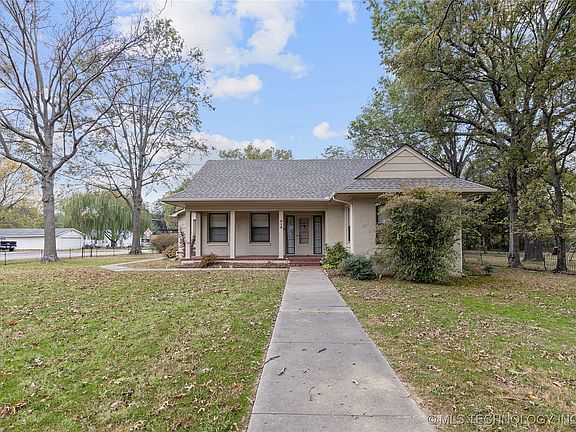 Welcome home to 816 S McQuarrie Avenue — a beautifully maintained, full-brick residence that wraps gracefully around its picturesque corner lot in Wagoner. This home exudes warmth and timeless charm from the moment you arrive.Step inside to discover inviting formal living and dining rooms, a cozy family room with a gas-log fireplace, and a kitchen that opens easily for everyday living and effortless entertaining. The home offers three comfortable bedrooms, including two private suites, creating ideal flexibility for guests or multi-generational living.The large utility room features a counter, sink, and generous storage, while numerous closets throughout the home add to its practical appeal. Plantation shutters, built-in bookcases in the formal living room, and thoughtful architectural details give the home a classic, elegant feel.A standout feature is the light-filled office/flex room, which can be closed off with beautiful French doors for privacy. With its own exterior entrance and doorbell, it’s the perfect setup for working from home, meeting clients, or simply enjoying a quiet retreat.Beautiful wooden French doors from the main hallway lead to a secluded north-side deck, offering a peaceful outdoor escape. The detached two-car garage includes built-in cabinets with countertop and a separate storage room — all connected to the home by a covered breezeway for convenience in any weather.You’ll love the beautifully landscaped backyard, complete with decorative wrought-iron fencing, partial privacy fence, mature trees, and a charming porch swing on the covered back porch — an ideal spot to unwind and enjoy the serenity of this property.With its combination of comfort, character, and classic curb appeal, 816 S McQuarrie Avenue is the kind of home that welcomes you in and makes you want to stay.