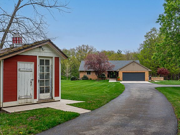 ***MULTIPLE OFFERS RECEIVED HIGHEST AND BEST DUE FRIDAY MAY 12 AT 8:00 PM Looking for a peaceful retreat in the heart of the Midwest? Look no further than Sol Shine, this beautiful property in coveted Bull Valley is located on 5 wooded serene acres that offer true zen, spa-like comfort, and outdoor living space. With a mid-century brick ranch-style home, lots of natural light, and space for relaxation, this property is a dream come true for anyone who values privacy, nature, and a sense of peacefulness, quiet and calm. The well-maintained home is a place to unwind and achieve much sought after peace and tranquility after a long day at work or spend a relaxing weekend with family and friends. This secret escape is the perfect weekend or everyday get away. Outside, you'll find a 20'x40' heated barn for storage/workshop, maybe even a guest cottage? The super cool chicken coop is ready for you to gather your own eggs and two raised garden beds to grow your own vegetables and herbs. Enjoy the outdoor living space with three decks for entertaining, with plenty of room for guests to relax and enjoy the beautiful surroundings and the big open sky. There are private walking trails in the woods with two bridges, you can take a leisurely stroll and enjoy the beauty of nature. Did someone say pie? Enjoy peach and cherry trees in your own orchard. Whether you're a seasoned gardener or simply enjoy the beauty and serenity of nature, this property is the perfect place to come let your SOL SHINE. So why wait? Come see this amazing property for yourself today, and start enjoying the beauty and serenity of Bull Valley living!