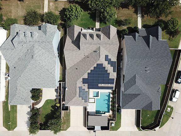 Custom built by Southgate in Angel Field West, this home truly blends high quality finishes, energy smart systems, and thoughtful details. 44 Panasonic solar panels with Enphase inverters are PAID OFF average electric bill of less than 20 per month! A treelined walkway to the shaded front porch sets the stage before you step inside to find premium 5in wood floors throughout the first level, stairs and game room. Decorative lighting, solid wood doors, soaring ceilings. The kitchen features an oversized quartz island, pendant lighting, double ovens, pot filler, 6 burner gas cooktop, wood vent hood, and cabinets stacked to the ceiling. Breakfast area overlooks the sparkling pool with custom automated roll up shades. Living room with stone gas fireplace, prewired with speakers and wood beams. The primary bath has a freestanding tub, oversized shower, and dual quartz vanities with a walk in closet that connects the laundry room with a sink. Another bedroom on the main level close to a full bath. Covered back patio with fireplace and automated 16ft patio shade. Top of the line 2023 pool and spa with Pentair equipment and automation. Spa has 8 massage jets and bubble feature; pool with water feature and color changing LED lights. Fully equipped outdoor kitchen with custom wood pergola, TV mount, backyard turf and a Zen hammock garden with lighting. Holiday light outlets with switch in stair storage closet. Second level game room, media room and 2 additional bedrooms, 1 bedroom with an ensuite bath and balcony. Media room prewired for 7.1 sound and 155in screen. This smart home is loaded and energy efficient! Alexa enabled roll up blinds, electronic water main valve in the mud room. Tesla Powerwall 2 battery for uninterrupted power during outages, tankless water heater, radiant barrier, water softener w. microfiltration, reverse osmosis drinking water system, EV charging plug, and whole house surge protection. 3 car tandem garage with epoxy flooring and overhead storage.