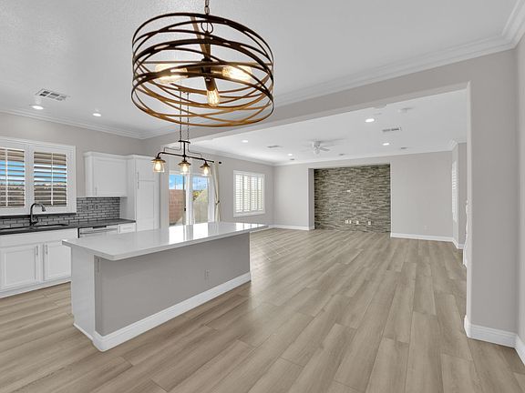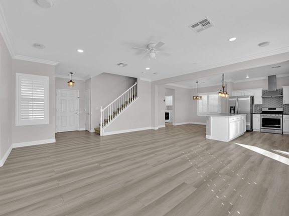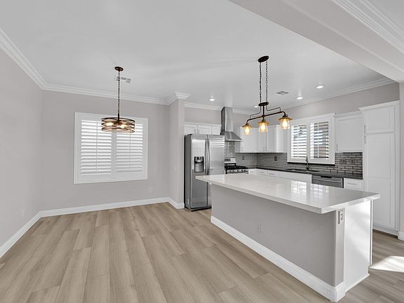 Modern light fixturesCozy low maintenance backyardCustom patio coverWell manicured front lawnLarge open concept kitchenGreat strip viewsStainless appliances