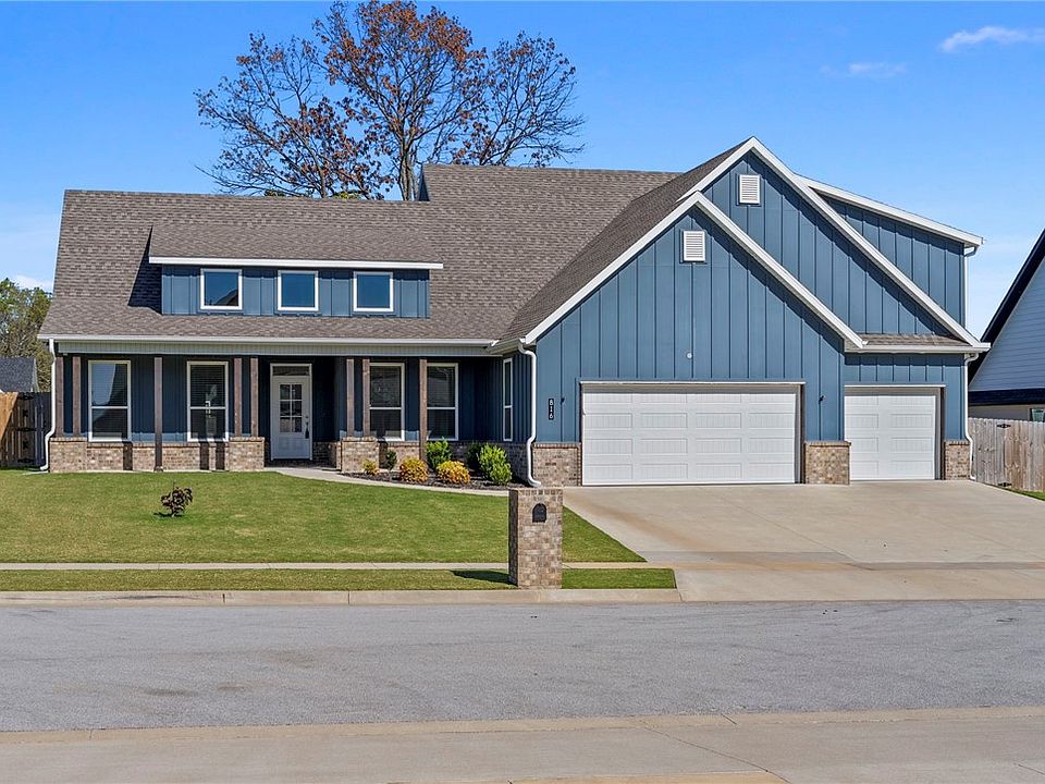 Ask about our preferred lender credit! Make this your new home at 816 Spurgeon Way in Prairie Grove! This home offers an open floor plan with plenty of large windows for natural light, wood beams in the living room, & a spacious kitchen island, perfect for entertaining. Enjoy meals in the adjoining dining area. Bedroom 4 can easily double as a home office to fit your lifestyle. Upstairs you’ll find a bonus room & additional half bath for convenience. Cozy up by the living room fireplace or relax outside on the large covered front porch or covered back patio. Just minutes from downtown Prairie Grove and the historic Battlefield State Park, this home combines comfort, convenience, & charm in one ideal location. Washer, dryer, & refrigerator can convey.