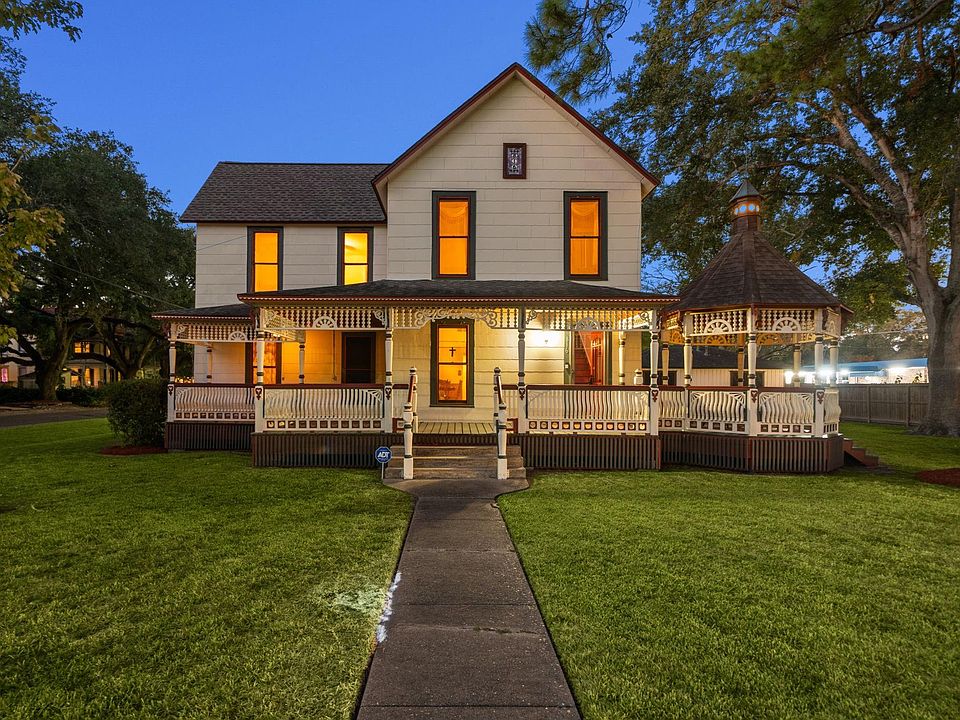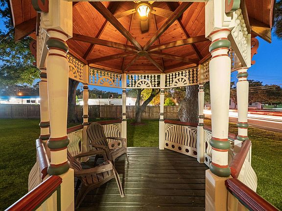 Attached gazeboTimeless craftsmanshipCorner lotWraparound front porchOrnate woodwork