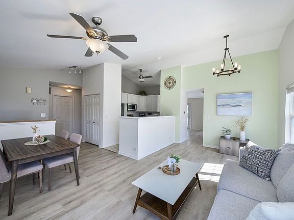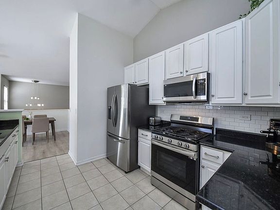 Open flowing floor planNew ss appliancesGranite countertopsNew lvp flooringStainless steel appliancesTile backsplashBright sunny end unit