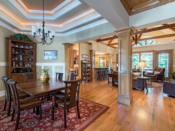 Start living the lake life you deserve! A captivating home that perfectly blends quality craftsmanship with comfortable lake living. Exposed beams, double tray ceilings, coffered ceilings, & ambient lighting are of a few of the details that will impress all that visit. The kitchen is the heart of this home and opens to the great room. The open layout is conducive to entertaining but offers a relaxing atmosphere for casual living. A spacious owner's suite is located in the rear of the home, granting the utmost privacy. The versatile fourth bedroom over the garage can double as a second living quarters or guest bedroom. An over-sized garage is sure to please with its extra work space. The rear of the home boasts multiple entertaining areas. Enjoy the views and sounds of lake living from a covered terrace, screened porch, by the outdoor fireplace, from the hot tub or down by the private pier/dock. This home may just be perfect!