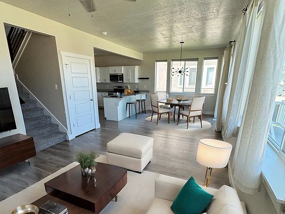 Enjoy a bright, modern home tucked on a quiet dead-end street in Eagle Mountain. This spacious 3-bed/2.5-bath includes a fully fenced backyard with automatic drip irrigation, a deck for entertaining, and direct access to HOA-maintained green space. Upgrades include stainless appliances, open kitchen, oversized garage with windows, and abundant natural light. Walk to nearby playgrounds and new trails, and reach dining, shopping, coffee, and Porter's Crossing conveniences in minutes. HOA covers common area landscaping and snow removal.