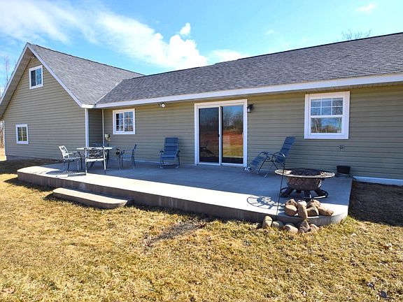 Gorgeous newer 4 BR, 2 BA home, great curb appeal, one level living, maintenance free & high-end finishes! Wind down the private drive to this perfect home with an A1 location just west of Siren and a few minutes from Hwy 70. 5.26 private acres with a great mix of lawn & woods and a patio to enjoy after a long day. Att. 2 car insulated gar. & 28x66 pole bldg. w/elec. to store all of the toys! Updated flooring, interior repainted, fun contrasting trim, barn doors added, new roof 2022, HVAC serviced every year and well maintained. Light & bright interior, cozy living room w/stone LP gas frplc., vaulted ceilings, wonderful kitchen w/custom cherry knotty alder cabinets, lots of storage, granite counters. Dining room off the kitchen for ease of entertaining. Stunning master suite offers your own personal haven w/clawfoot tub to soak in, walk-in closet. Guests or teens will love their own private loft BR. This home boasts all the appointments you seek and definitely checks all the boxes!