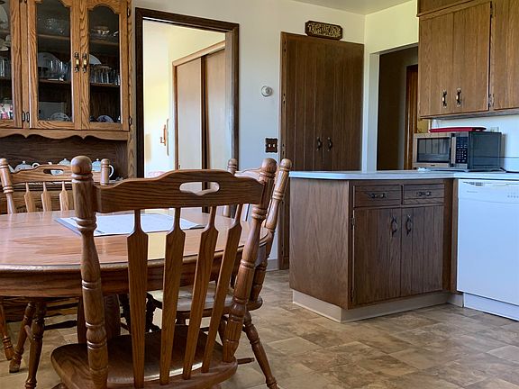Peaceful country living with lots of mature trees. This home is all on one level. No need to worry about a flooded basement. All the appliances are included and there is a fabulous kitchen pantry. The family room has a beautiful rock wood burning fireplace. The living room has large windows to gaze out onto the yard. There are 2 bedrooms and one full bath. A bonus is the large entryway with great closets and storage space. The 2 car garage has some cabinets also and a concrete floor. The acreage is yet to be determined but is anticipated to be around 5 acres. A survey is in progress. This will also determine the taxes.