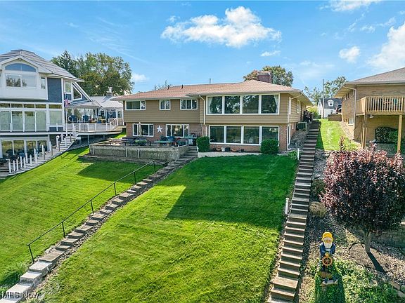 NEW ON MARKET: MENTOR LAGOONS 4 BEDROOM RANCH, 2 DOCKS PLUS ROOM FOR 2 MORE! 2175 sq ft plus equal Lower Level. Remodeled kitchen less than 7 years old, featuring solid wood cabinetry, slow close, dove tailed drawers. Dining Room has extra wall of custom cabinets. Large Living Room features BEAMED CEILING, STONE FIREPLACE and FULL WALL of WINDOWS with wonderful view of the LAGOON. 4 Bedrooms, 3 Baths, Lower Level has Huge REC ROOM, wet bar, fireplace and another full wall of windows for view of docks. Comuter room, work out room and plenty of storage. Roof and Double driveway less than 10 years old. Landscaped yard leading down to 2 docks right on the LAGOON. Sea Wall down to bed rock. Beautiful views all year around. Appointment Only.