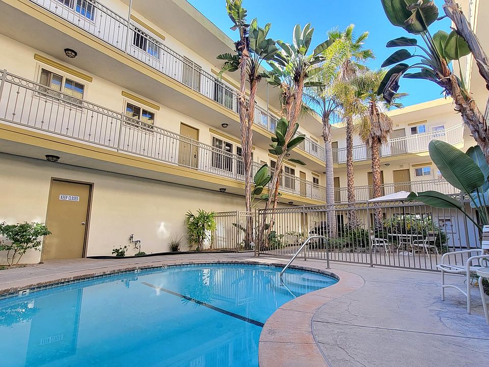 (*$2495 price is WITHOUT PARKING! Regular Price is $2,595/month with gated Parking for 2 cars*) Showings are EASY! (7am-6pm, 7 days) Just TEXT Joshua to coordinate with him (323)@ 606-1348... Very Spacious Upper middle unit with wood plank style flooring throughout. NO CARPET. Large living room with fireplace style heater and pool view. Elevator Building. Kitchen with stone tile counters and stainless Electric Stove included. Bring your fridge. Huge dining room open floorplan. Large Bedrooms and 2 baths. Clean Coin Laundry facility onsite. - 1yr lease. Tenant pays all utilities. NO PETS! (Service Dogs and Emotional Support Animals are OK) (*$2495 price is WITHOUT PARKING! Regular Price is $2,595/month with gated Parking for 2 cars*) - 1yr lease. Tenant pays all utilities. NO PETS! (Service Dogs and Emotional Support Animals are OK)