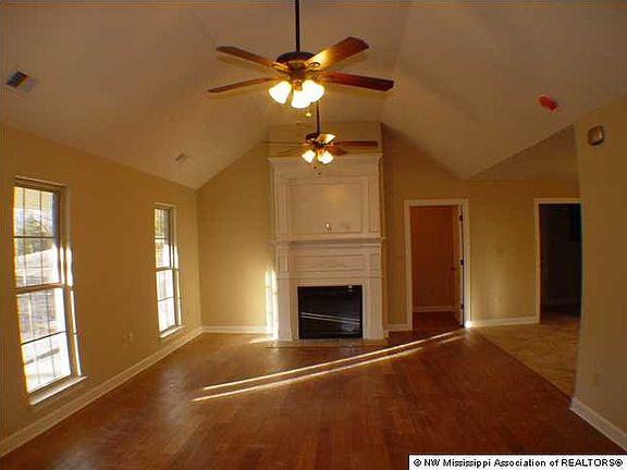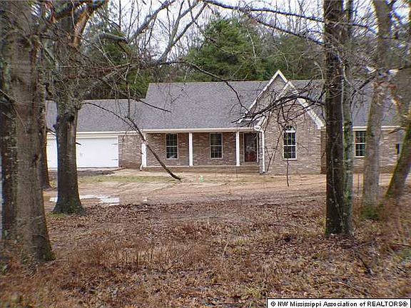 COUNTRY LIVING at its finest on this 2.5 acre wooded lot. From the moment you drive up and see the large country porch, you will feel right at home. This wonderful open plan has large rooms throughout and the huge vaulted great room will warm you with its fireplace and gorgeous wood floors. You will really enjoy the beautiful kitchen with staggered custom cabinets, upgraded counter-top, stainless appliances, and 20" tile. There is also an extra-large pantry! All three bedrooms are oversized, and the master suite sports two closets, a jetted tub, a walk-in shower, and a large vanity/sink area. In addition to all of this space, you also have an office/computer room. Additional amenities include: smooth ceilings throughout, nice-sized laundry room with cabinetry, gutters, and you are very close to Hernando Point Recreation Area on Arkabutla Lake! This home qualifies for 100% USDA Financing. Call today before this one slips away.
