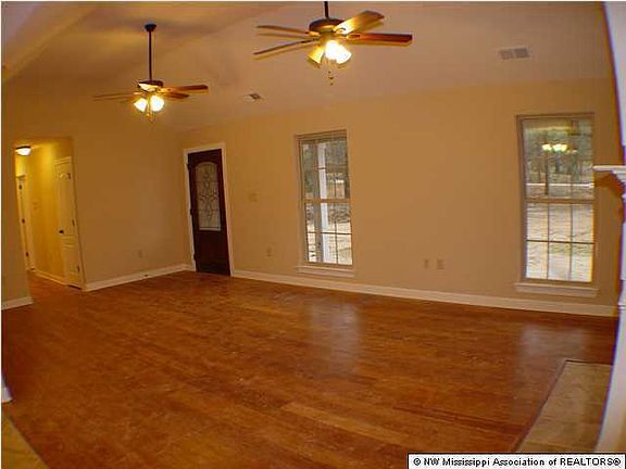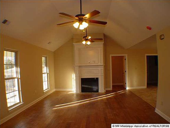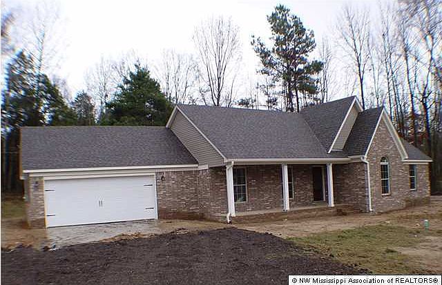 COUNTRY LIVING at its finest on this 2.5 acre wooded lot. From the moment you drive up and see the large country porch, you will feel right at home. This wonderful open plan has large rooms throughout and the huge vaulted great room will warm you with its fireplace and gorgeous wood floors. You will really enjoy the beautiful kitchen with staggered custom cabinets, upgraded counter-top, stainless appliances, and 20" tile. There is also an extra-large pantry! All three bedrooms are oversized, and the master suite sports two closets, a jetted tub, a walk-in shower, and a large vanity/sink area. In addition to all of this space, you also have an office/computer room. Additional amenities include: smooth ceilings throughout, nice-sized laundry room with cabinetry, gutters, and you are very clo se to Hernando Point Recreation Area on Arkabutla Lake! This home qualifies for 100% USDA Financing. Call today before this one slips away.