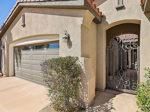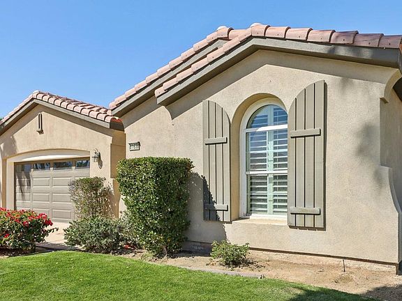 Nestled within the prestigious 55+ Trilogy La Quinta community, this highly sought-after Monterey plan with a detached casita offers an exceptional blend of comfort and elegance. Boasting 1,965 sq. ft. of thoughtfully designed living space, this single-family residence features 3 bedrooms, 3 bathrooms, and a versatile den/office or formal dining area. A wrought iron privacy gate welcomes you into the charming front courtyard, providing access to both the casita and main home. The spacious great room showcases tile flooring, a beautifully tiled gas log fireplace with a mantel, a TV/media niche with downlighting, and plantation shutters throughout. The open-concept kitchen is a chef's delight, appointed with slab granite bullnose countertops and backsplash, a gas cooktop, built-in microwave, double ovens, a generous prep island with bar seating, a pantry, and upgraded antique white cabinetry. The well-appointed guest accommodations each feature a full bath, ensuring comfort for family and friends. The expansive primary suite, highlighted by a bay window, includes an en suite bath with dual sinks, a vanity, a large shower with a bench seat, and a custom-designed closet organizer. Outdoor living is a tranquil retreat, with an extended alumawood pergola-covered patio in the serene backyard, as well as an additional covered space in the front courtyard. All this, just a short golf cart ride away from the world-class amenities at the Santa Rosa Clubhouse.