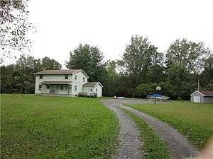 Country colonial on 14.7 wooded acres with large pond. Bordered at rear by creek. All generous size rooms. Roof '10, Furnace '08, FR & LR laminate flooring '10, newer carpeting upstairs. Central vac., generator in shed hardwired to panel runs much of the house. Nice oak eat in kitchen and formal dining area. 16 x 16 steel sided shed. Full, dry basement.