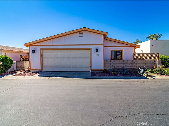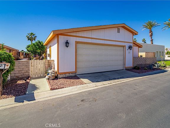 Discover the allure of this well-maintained 3-bedroom, 2-bathroom residence nestled in the serene Desert Grove 55+ gated community. This remarkable home is 433A certified, ensuring it's securely anchored on a permanent foundation—plus, you own the land it sits on! Residents of this vibrant community enjoy an array of amenities, from the convenience of gated entry to recreational offerings like tennis courts, pickleball, swimming pools, and inviting hot tubs. A spacious club house provides a perfect setting for social gatherings, while the option for RV parking is available for a nominal fee. And with low HOA fees! Inside, the home welcomes with an cozy floor plan complemented by vaulted ceilings, with central A/C and heat. Step outside to the fantastic recently updated patio oasis, atmospheric outdoor lighting, and a gated yard ideal for pets! Embrace the Southern California lifestyle in this idyllic setting, where sunny skies and picturesque mountain views create a backdrop for year-round enjoyment. From vibrant festivals and concerts to outdoor adventures like hiking and biking, the Coachella Valley offers endless opportunities for recreation and relaxation.