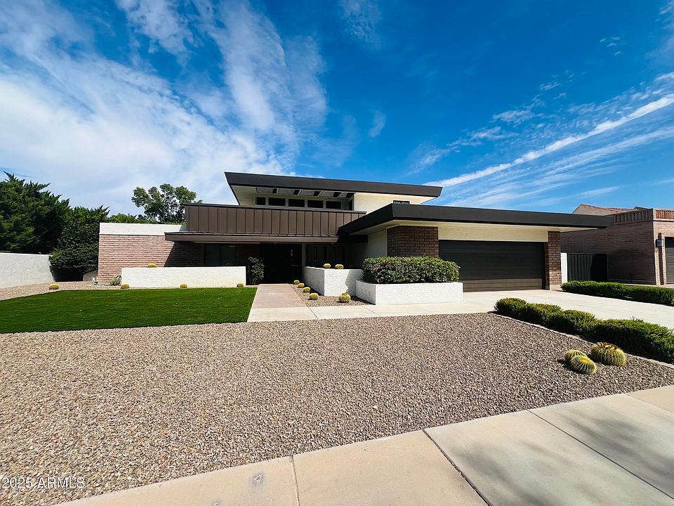 Recently updated Lake Front home designed by world renowned architect John Rattenbury. There are new modern bathrooms, blonde oak hardwood floors & fresh paint throughout. All bedrooms have en-suite baths & walk in closets! This is a rare opportunity to own this masterpiece with stunning architecture and design elements deeply rooted in the disciplines of Frank Lloyd Wright and Taliesin. The home is located on a large corner lot in McCormick Ranch - The Islands. This custom home backs to Lake Marguerite and offers mountain views. You are walking/biking distance to many great restaurants and shopping. The Indian Bend Greenbelt is just down the street! The lake is stalked with fish for those who enjoy fishing. The large master suite is downstairs and offers great views & a cozy fire place.