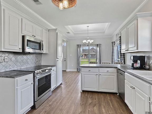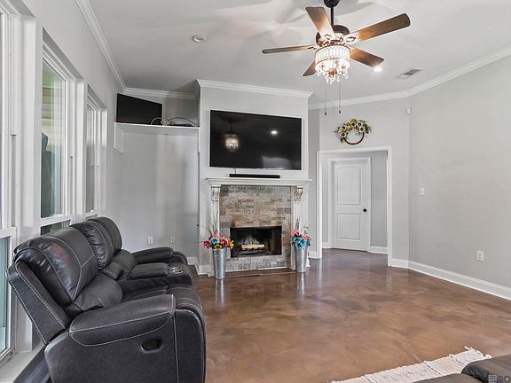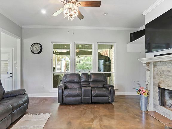 Discover the charm and convenience of this beautifully maintained home, nestled in Acadiana Place Subdivision. This property offers three cozy bedrooms, including a spacious primary bedroom, and two full bathrooms, ensuring comfortable living spaces for all. Featuring a generous 1,468 square feet of interior space, the home is highlighted by concrete floors and a welcoming wood-burning fireplace. The kitchen is a chef's delight with leather-finish granite countertops, stainless steel appliances, and floods of natural light that make cooking a pleasure. Outdoor living is just as splendid with a fully fenced backyard that includes a covered patio with a bar, perfect for entertaining and relaxation. Additionally, the property boasts a sizable 24 x 36 metal shop and an 18 x 19 lean-to off the carport for ample storage solutions. The electric wrought iron gate adds a touch of sophistication while enhancing security and privacy. Located in a tranquil neighborhood known for its excellent schools and proximity to great shopping and dining options, the home is also near several local attractions. Train Station Park, Kinchloe Lloyd Baker Park, and the Denham Springs Antique Village are all within easy reach, enriching your living experience with convenience and community charm. Whether you're enjoying the spacious workshop, hosting a backyard barbeque, or visiting the nearby parks and markets, this home offers a perfect blend of comfort, style, and convenience. A true gem in Denham Springs, it awaits to bring joy and ease to your daily life.